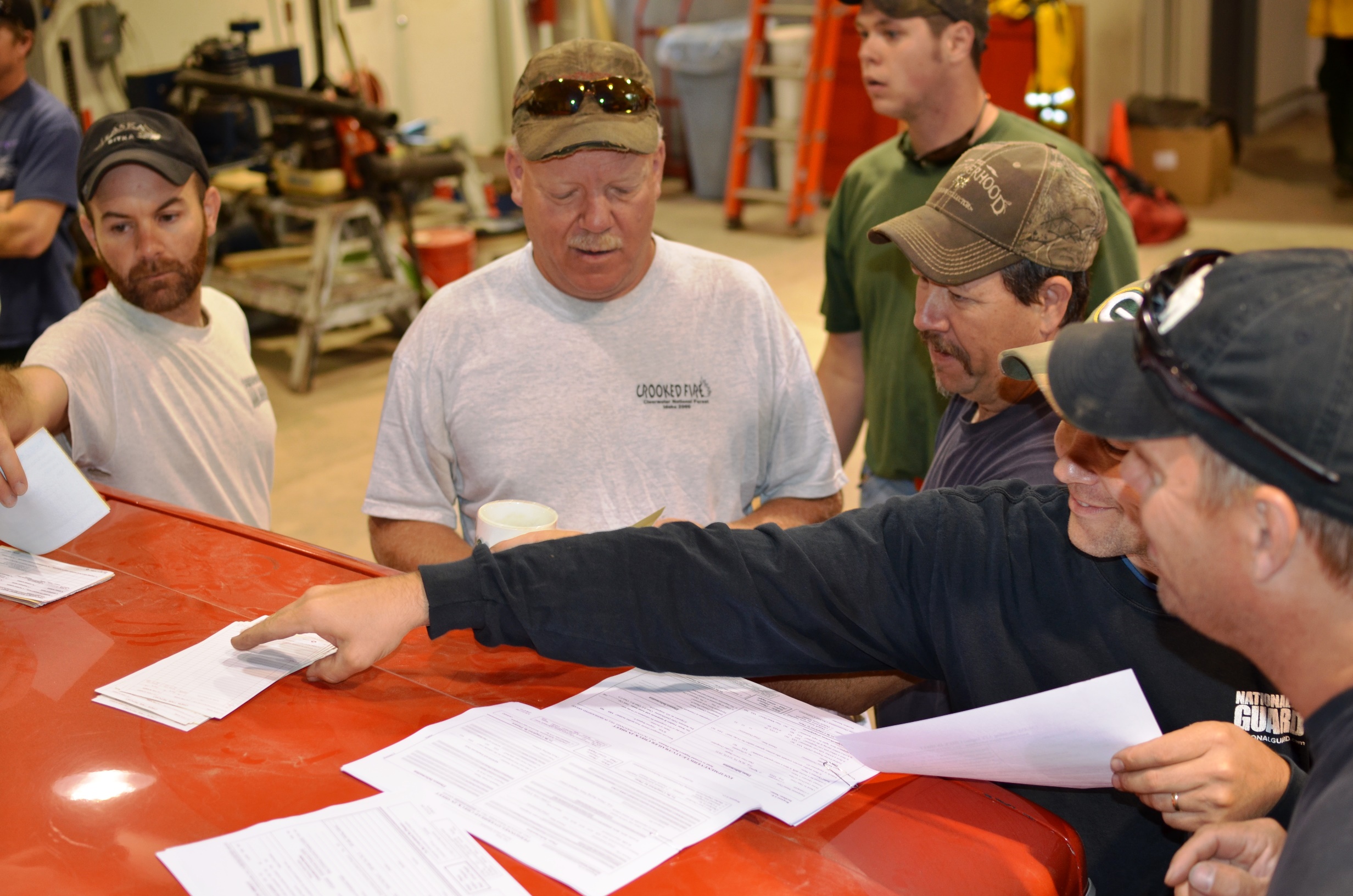 Check-in: Firefighters check in Friday morning at the Michigan Department of Natural Resources office in Ishpeming Township.