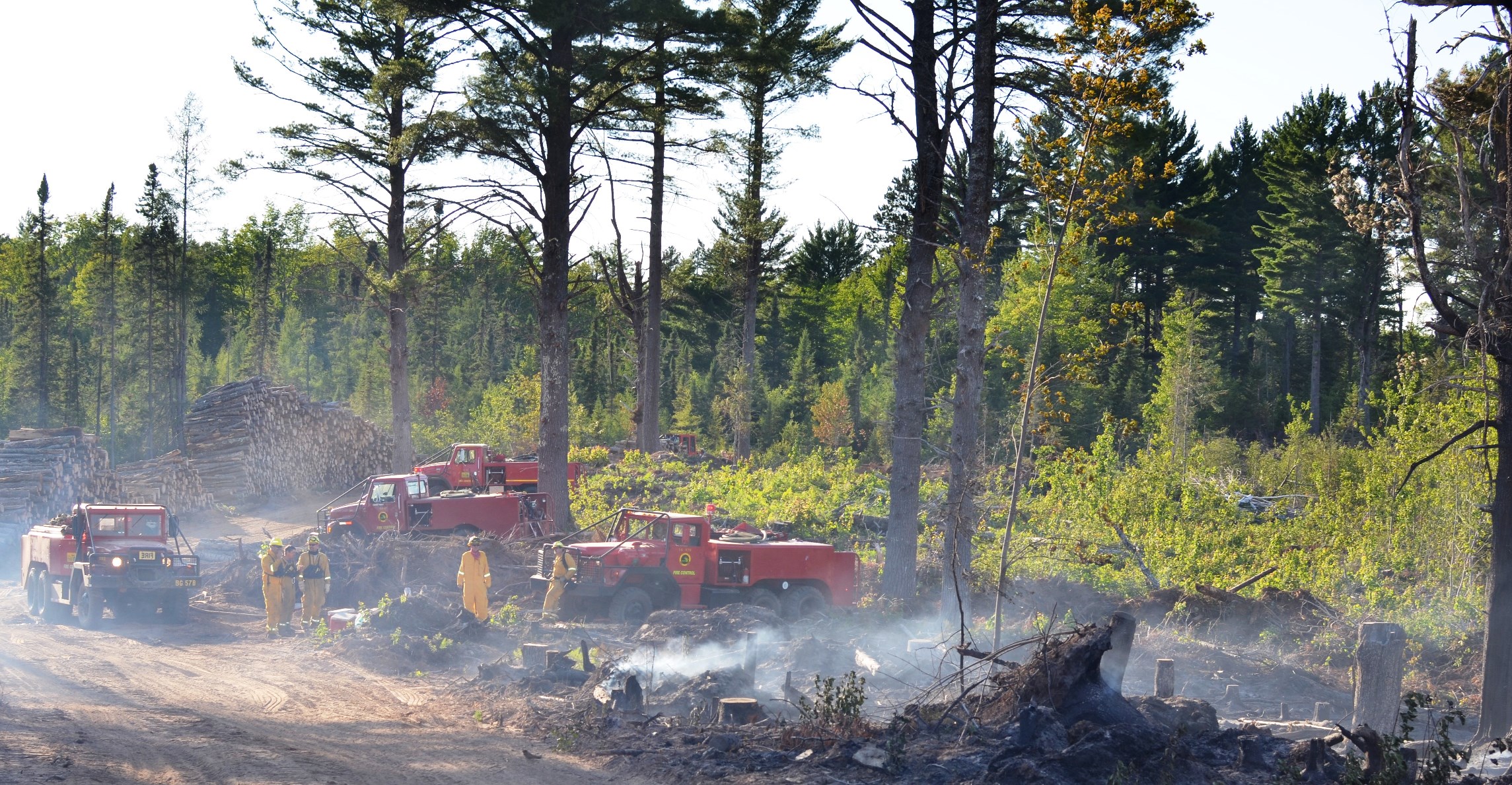 “The stumps, logging debris and stacked piles of logs made for good fuel for the fire, but made it more difficult for firefighters working to build a containment line around the fire,” Glover said.