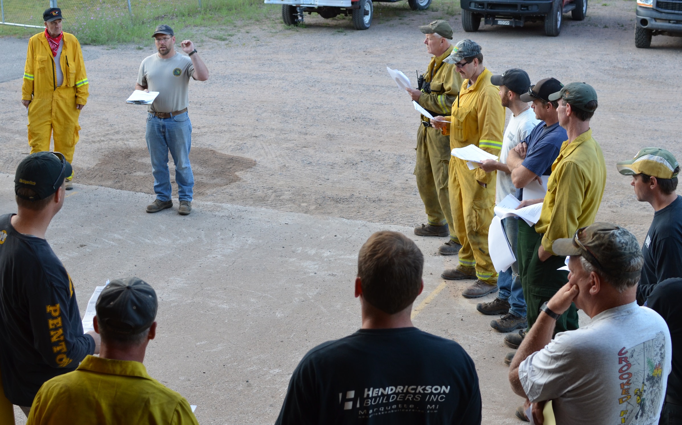 Briefing: Michigan Department of Natural Resources Gwinn Fire Supervisor Pete Glover briefs firefighters Friday morning at the DNR office in Ishpeming Township. Crews returned to the fire line today./