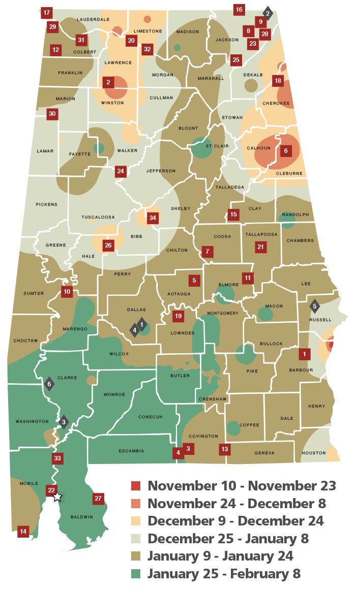 Chuck Sykes, Alabama Wildlife and Freshwater Fisheries (WFF) Director, said studies have confirmed that deer in Zone D in northwest Alabama and Zone E in southeast Alabama rut significantly earlier than deer in most of the state.