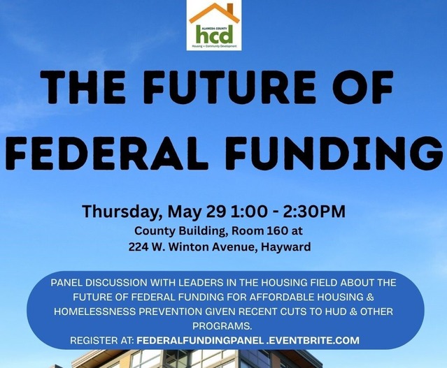 Alameda County Housing and Community Development is hosting The Future of Federal Funding: a lively and solution-oriented discussion with leaders in the housing field. Topics will focus on the future of federal funding, the heavy cuts to HUD and other federal programs, the effect they’ll have on housing and homelessness in the community and what role state and local resources, or public -private partnerships, can play to fill in the gap.