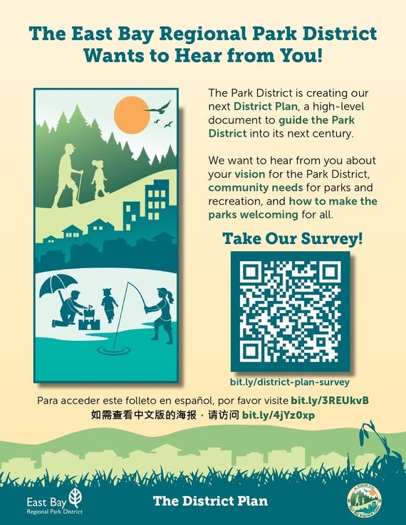 The East Bay Regional Park District is creating its next District Plan, a high-level document to guide the Park District into its next century. It provides a strategic roadmap with key priorities to move toward the vision of an extraordinary and well-managed system of open space parkland in Alameda and Contra Costa counties. Your voice is important - please share your ideas by taking this survey and participating in District public engagement activities.