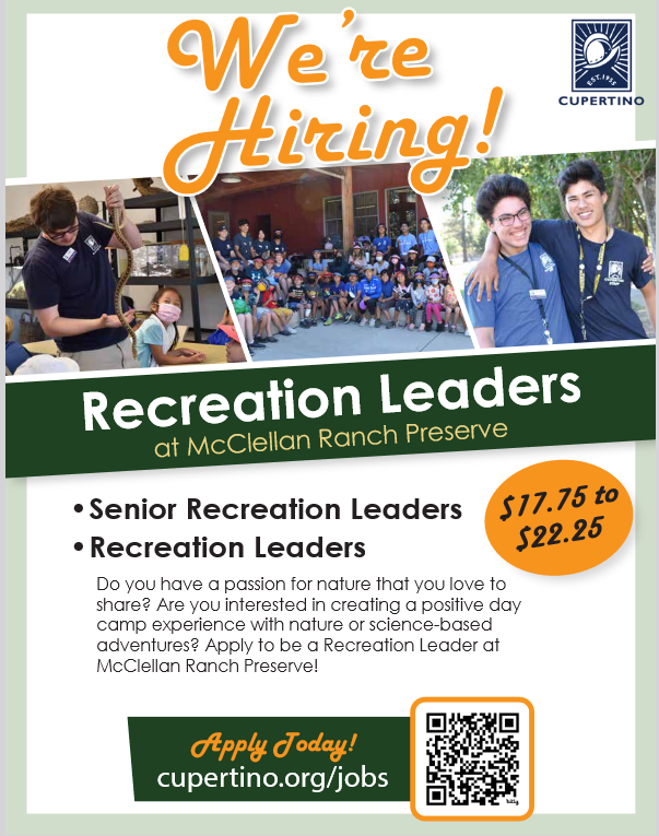 Do you have a passion for nature that you love to share? Are you interested in creating a positive day camp experience with nature, or science based adventures? Apply to be a recreational leader at McClellan Ranch Preserve!