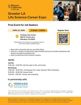 Are you looking for new opportunities in the life sciences industry? The Verdugo Workforce Development Board and Biocom California Institute invite you to the Greater LA Life Science Career Expo on April 23, 2025, at the Verdugo Jobs Center.