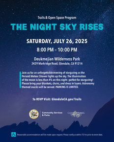Deukmejian Wilderness Park 3429 Markridge Road Glendale, CA 91214 July 26, 2025 8:00 PM - 10:00 PM