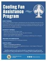 The Cooling Fan Assistance Program helps underserved seniors in the greater Glendale area stay cool during hot weather. Eligible residents ages 60 and older may receive one free fan per household, subject to program requirements.