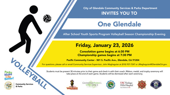 Join us for the exciting culmination of the One Glendale After School Youth Sports Program volleyball season! Hundreds of family members, friends, and community supporters are expected to fill the stands and cheer on our young athletes during both the consolation and championship matches.
