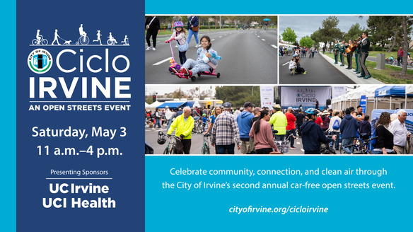 The City of Irvine invites the community to stroll, bike, and roll at the second annual CicloIrvine open streets event Saturday, May 3, from 11 a.m. to 4 p.m.