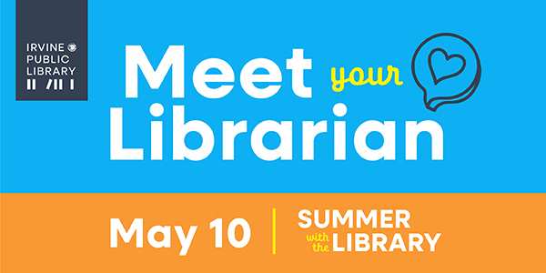 Come say hello to the newest faces of Irvine Public Library! Join us for a special Meet Your Librarian event Saturday, May 10, from 2 to 4 p.m. at Heritage Park Community Center. Get to know your new library staff, learn about upcoming services, and enjoy fun library-themed activities including special storytime presentations for families.