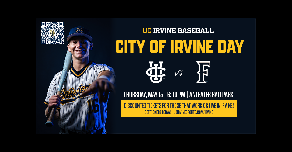 Don't miss out on City of Irvine Day at Anteater Ballpark Thursday, May 15. Join the City and UC Irvine for a fun night out as the UC Irvine baseball team takes on local rival Cal State Fullerton.
