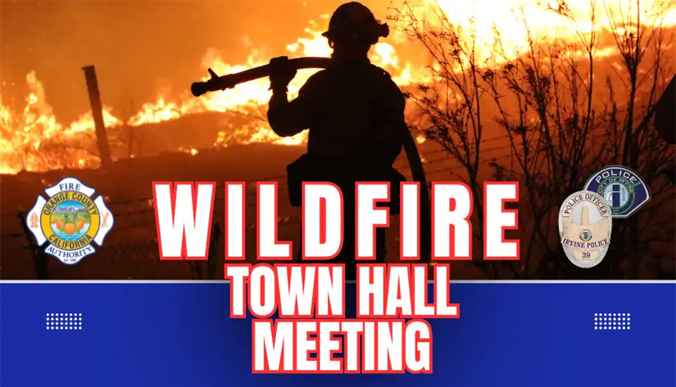 Join the Orange County Fire Authority (OCFA) and the Irvine Police Department for a Wildfire Town Hall Meeting Monday, May 19, from 6 to 8 p.m., at OCFA Headquarters.
