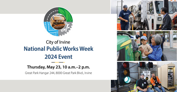 Join the City of Irvine for the 2025 Public Works Week Celebration, Thursday, May 22, from 10 a.m. to 2 p.m., at Hangar 244, Great Park.