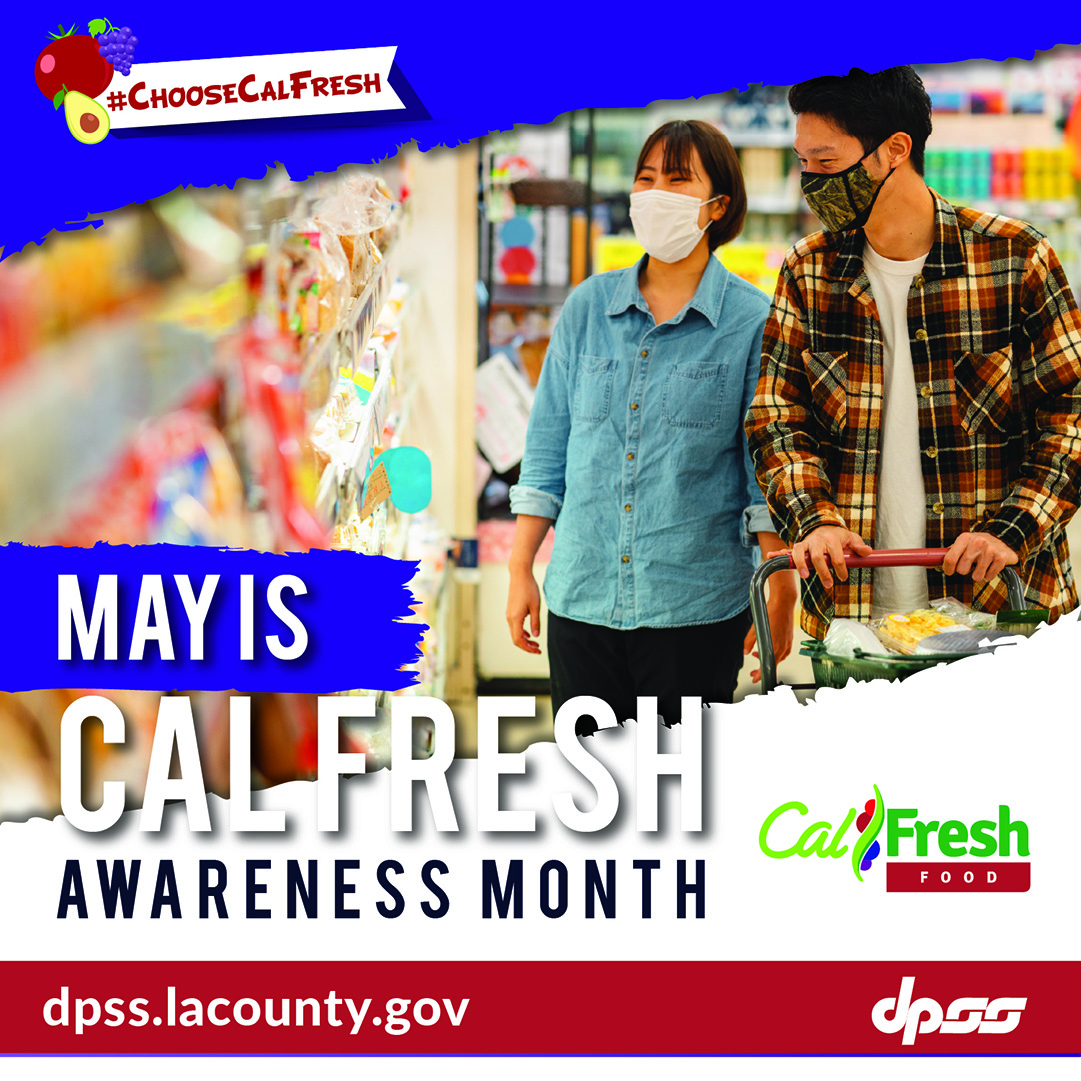 May is CalFresh Awareness month. This free grocery program is the first line of defense in helping the food insecure during the pandemic. Nearly 2 million LA County residents are eligible. Encourage your community members to register today.