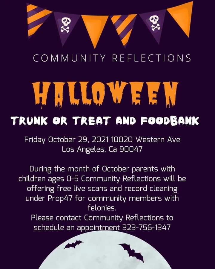Please click the link below for more information about a foodbank being offered, a "Trunk or Treat" event, and assistance for felony record cleaning with Community Reflections.