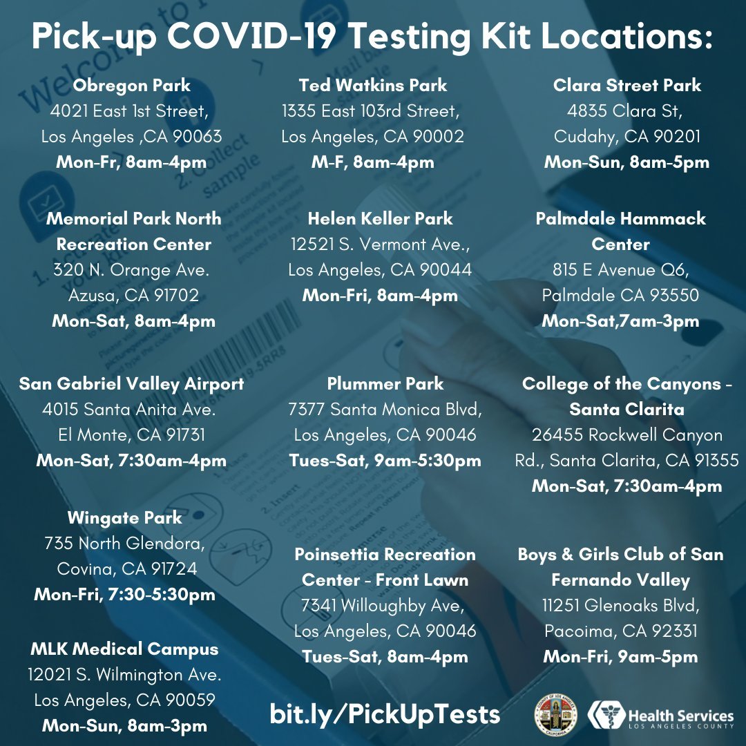 LA County Health Services launched a new program to increase and facilitate access to COVID-19 tests for LA County residents unable to obtain appointments. The Pick-Up Testing Kit program allows residents to pick up a PCR test kit, perform the test and return the completed test to designated sites for processing. Residents will be notified of their test results within 24-48 hours.