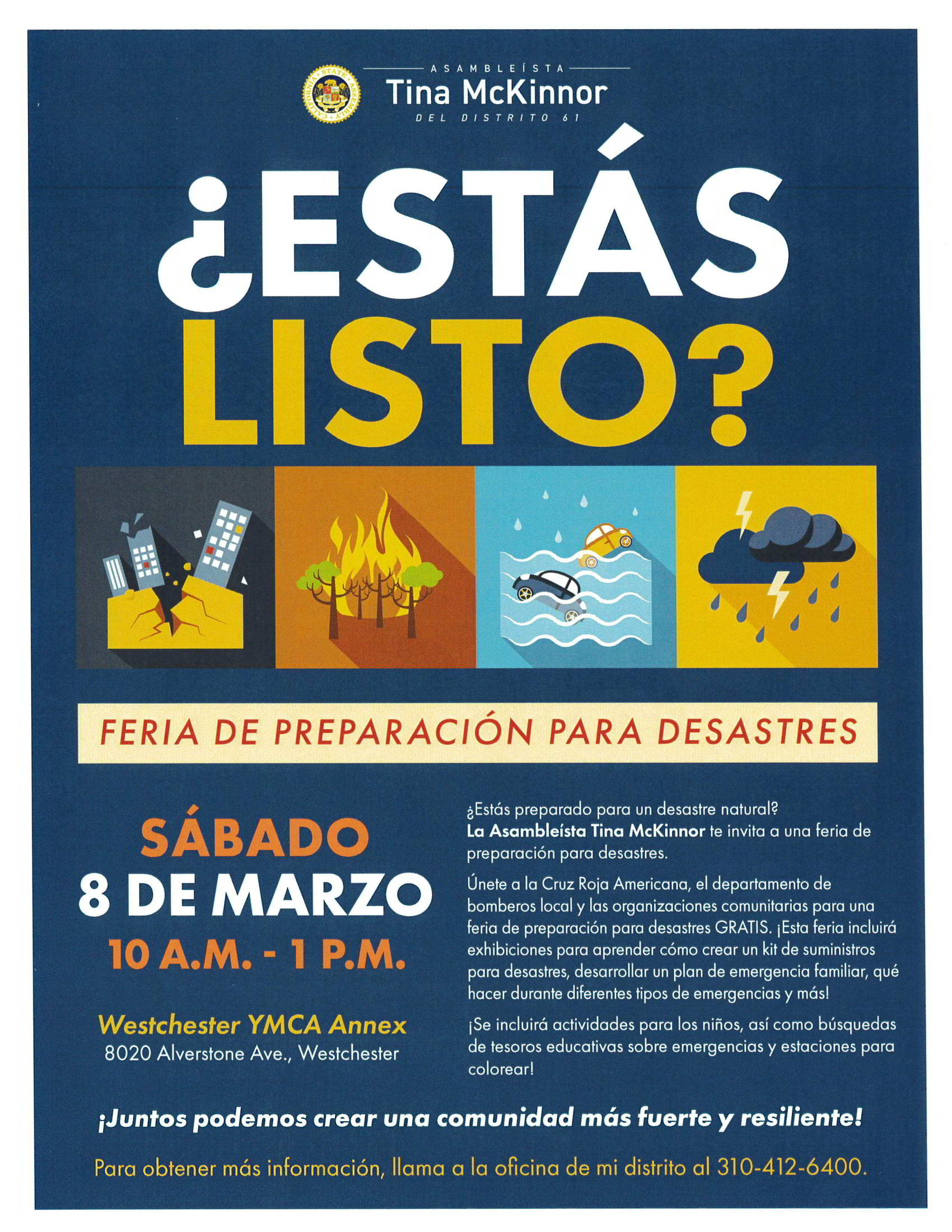 Join Assemblymember Tina McKinnor, the American Red Cross and community organizations for a FREE Disaster Preparation Fair..