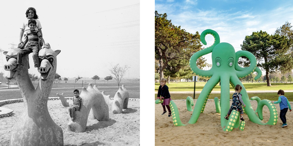 For nearly 65 years, Mexican artist Benjamin Dominguez’s (1894-1974) artworks Starfish, Octopus, Fish, Tripod, Mother Dragon, and Two-Headed Dragon (1961) have served as joyful icons of cultural expression, community identity, and creative play in LA County for all to enjoy. These historic playground sculptures will be conserved this fall, and as part of this effort, we aim to gather archival and historic photos sourced from the community to celebrate and archive the history of one of the most treasured and interactive series of public artworks in Los Angeles County.