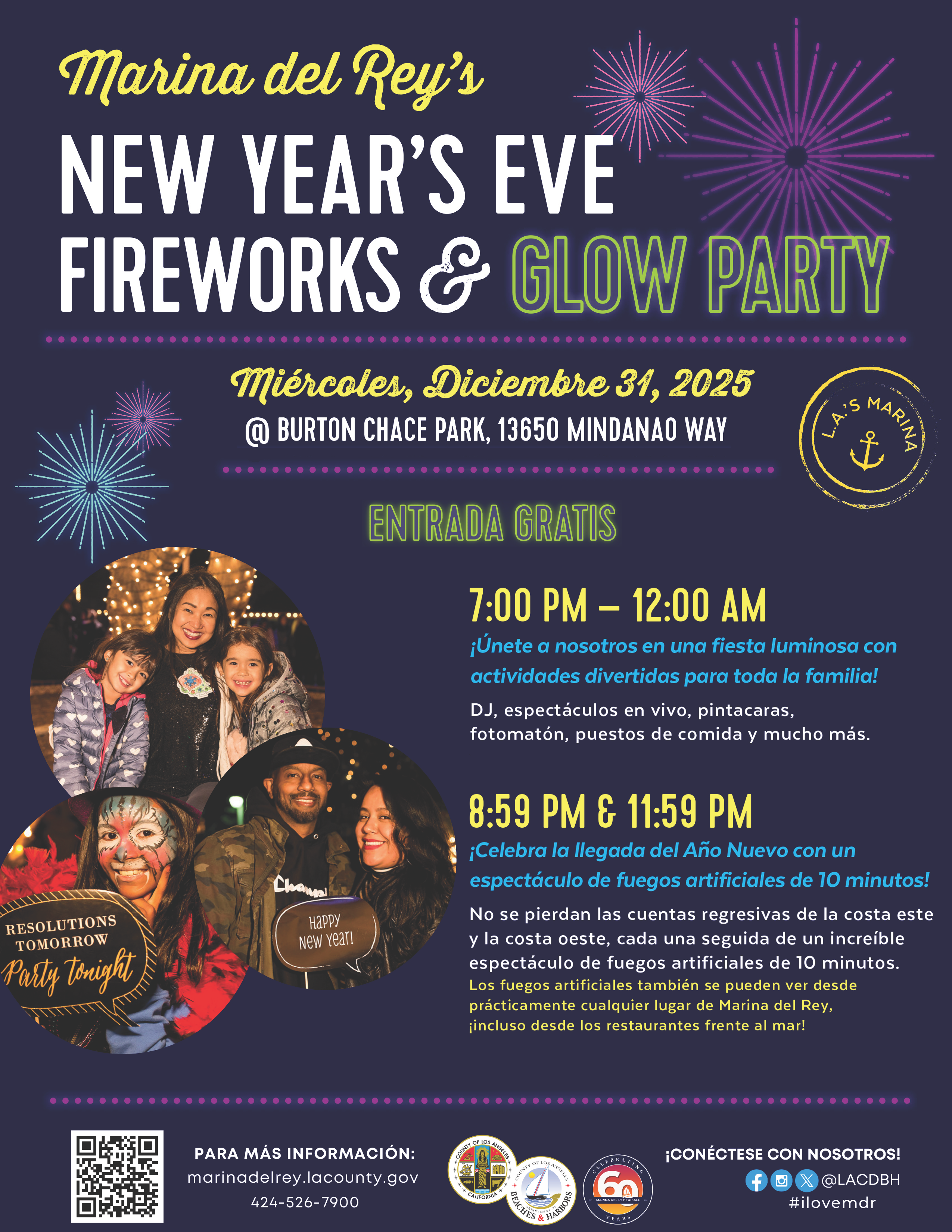 Ring in the new year by the water at Marina del Rey’s New Year’s Eve Fireworks & Glow Party! The show will feature a live DJ and entertainment, face painting, photo booths, and delicious food trucks. There will be two countdowns, East and West coast, each capped off with a spectacular 10-minute fireworks show lighting up the harbor.