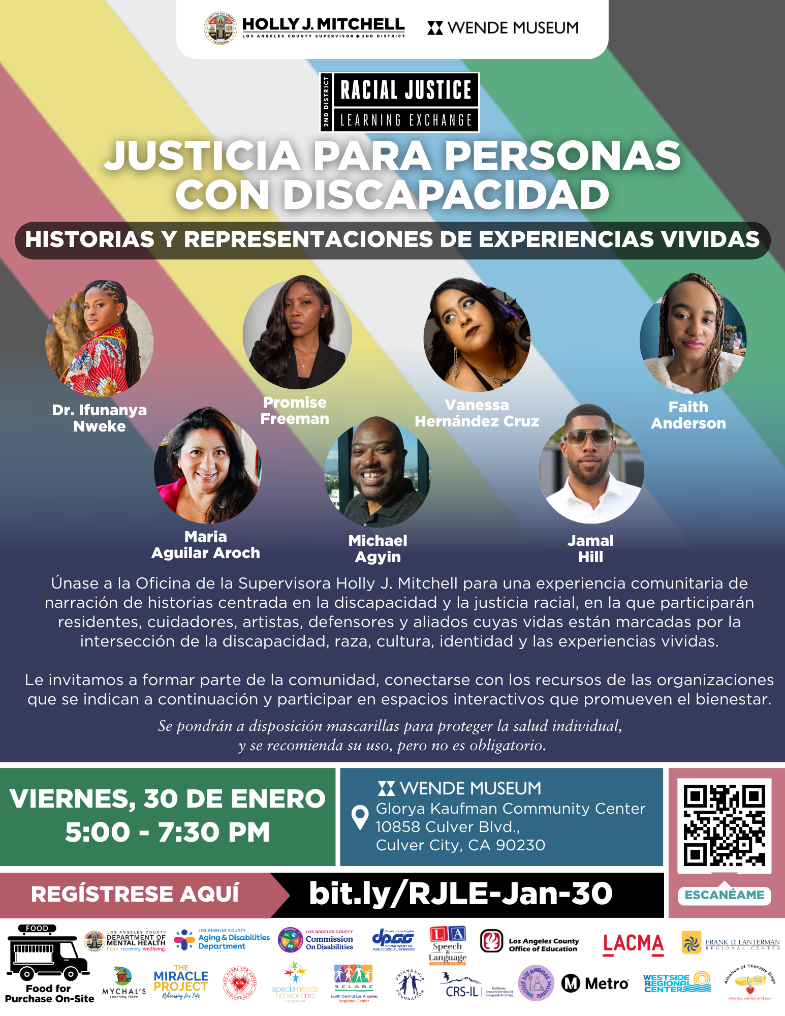 Join the Office of Supervisor Holly J. Mitchell for a community storytelling experience centered on disability and racial justice, featuring residents, caregivers, artists, advocates, and allies whose lives are shaped by the intersections of disability, race, culture, identity, and lived experience.