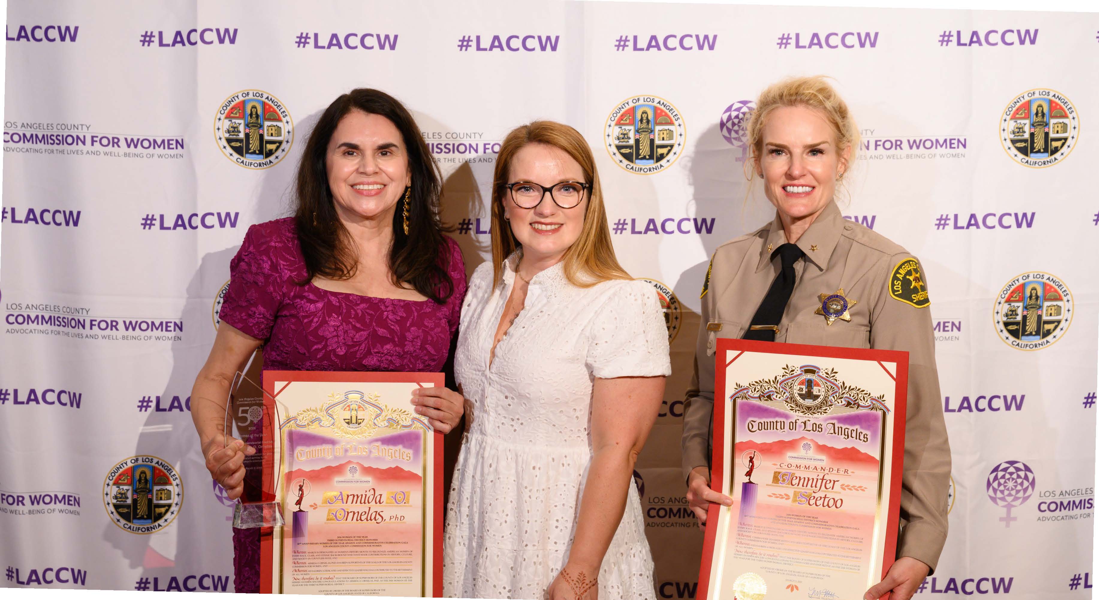 The award ceremony was led by the LA County Commission for Women and included presentations by the LA County Board of Supervisors and their LACCW awardees, as well as a reception for awardees, guests, friends, civic leaders, and community partners.