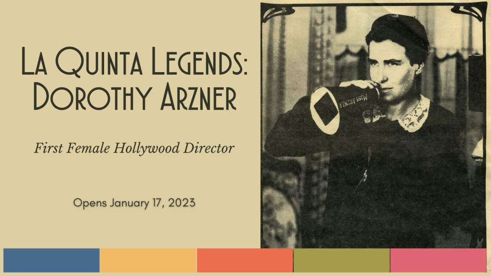 Explore the life of this Hollywood trailblazer, Dorothy Arzner. She was the only woman director during the “Golden Age” of Hollywood, with the largest body of work of any woman director to this day. A groundbreaker in the film industry, she also “broke ground” here in La Quinta, building a home that she shared with her partner, Marion Morgan.