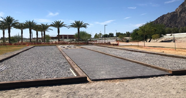 SilverRock Event Park – Staff is working on paver installation at the bocce courts.