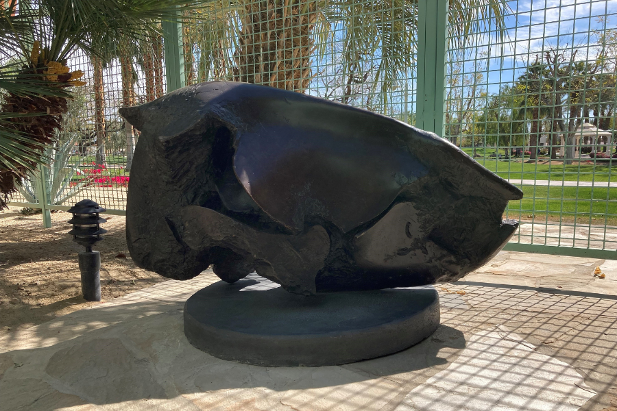 For over fifty years, Jack Zajac has created a diverse body of sculptural work. His subjects have ranged from animal skulls to flowing water, disparate images united by a desire to capture natural forms and forces and to grapple with themes of purification, sacrifice, and rebirth. Zajac began painting at a young age, and shortly after his family moved from Ohio to Southern California, he began taking art classes at Scripps College in Claremont, California. Over the next decade, Zajac received increased recognition for his paintings which balanced representational elements like birds and the sea with abstraction. In 1954, Zajac received the Rome Prize. While exposed to that city's wealth of classical sculpture, he began sculpting. Among Zajac's earliest exhibited sculpture was a series of sacrificial animals, goats and lambs sprawled over a stake or bound on their backsides. He would return to this theme over the next several decades. During the 1960s, Zajac produced a series of monumental bronzes depicting ram skulls, but also created more serene images. In polished stone and bronze, he represented falling water, breaking waves, and various animals. These subjects would continue to preoccupy him for several decades. In 1974, Zajac began teaching at University of California, Santa Cruz. Now retired, Zajac continues to live and produce sculptures in Santa Cruz. The Ram Skull is currently on display in the courtyard of the La Quinta Library and was donated by Richard Robertson, in memory of his close friend Steven M. Goldberg.
