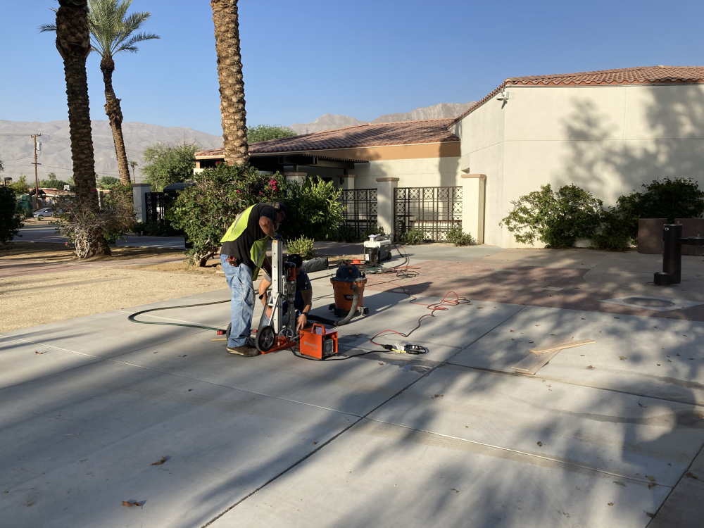 Civic Center Activities Promenade – Coring for table tennis anchors. Table tennis and cornhole will be installed tomorrow.