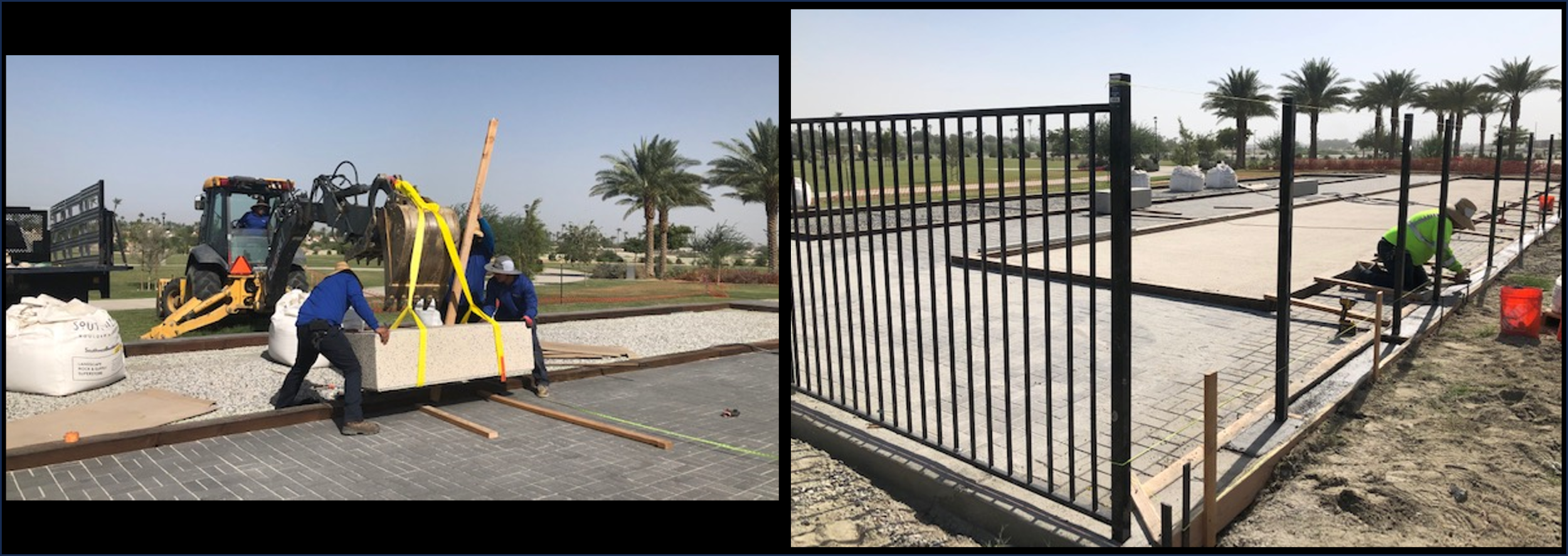 SilverRock Event Park – Staff are working on the bocce ball courts, installing the perimeter fence, curb and bringing in the benches.