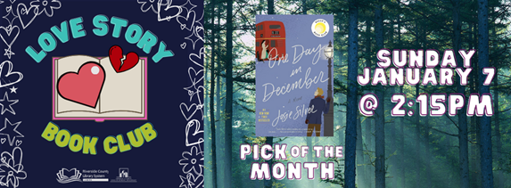 Happily, Ever After is not guaranteed in this traditional book club featuring romantic titles. January’s pick: One Day in December by Josie Silver. See the Adult Reference Desk to register and to ask about available copies. Sunday, January 7, at 2:15 P.M. Ages 18+.