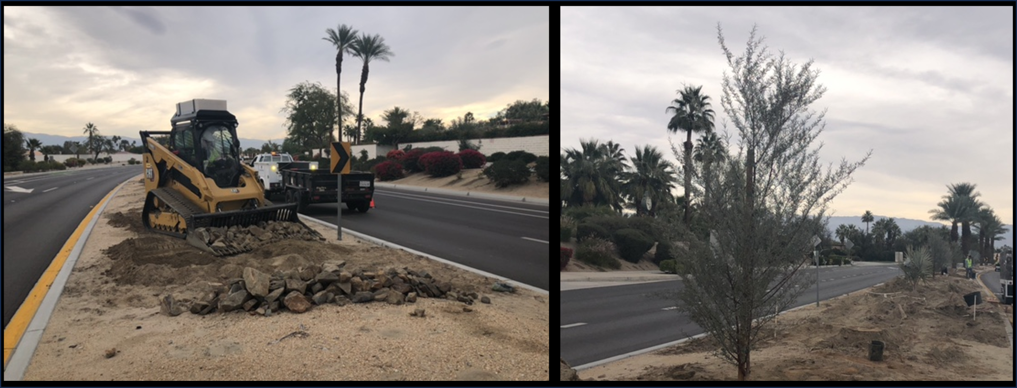 Avenue 52 – Staff is removing the rock from the medians and the contractor is installing trees.
