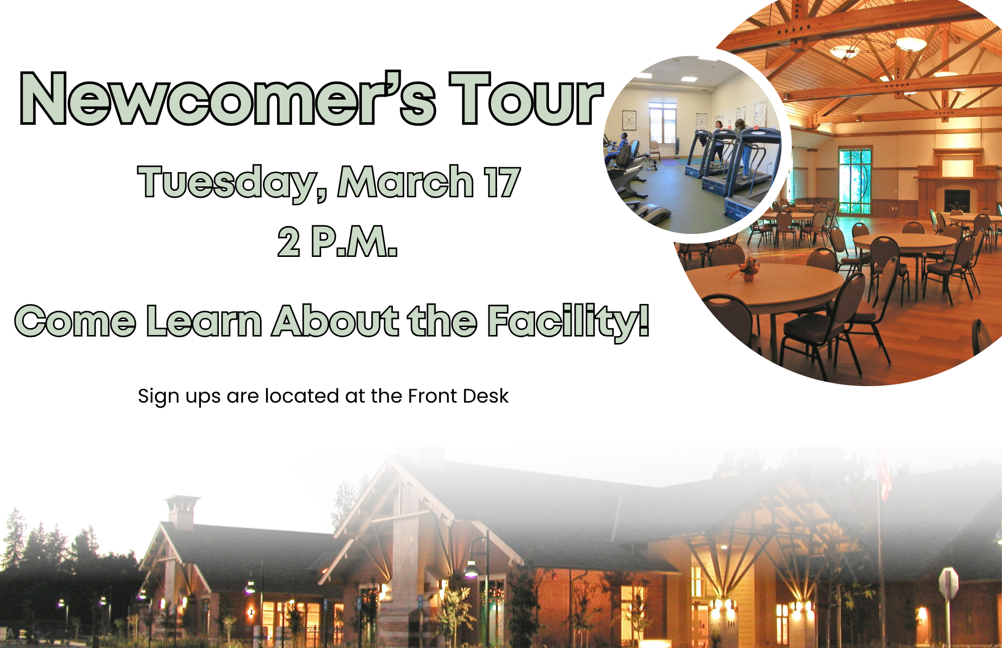 Curious about the Senior Center? Join the Newcomers Tour on Tuesday, March 17 at 2 p.m. in the Lobby to learn about classes, events, social services, and more.