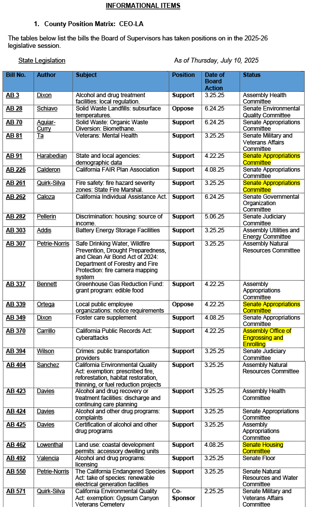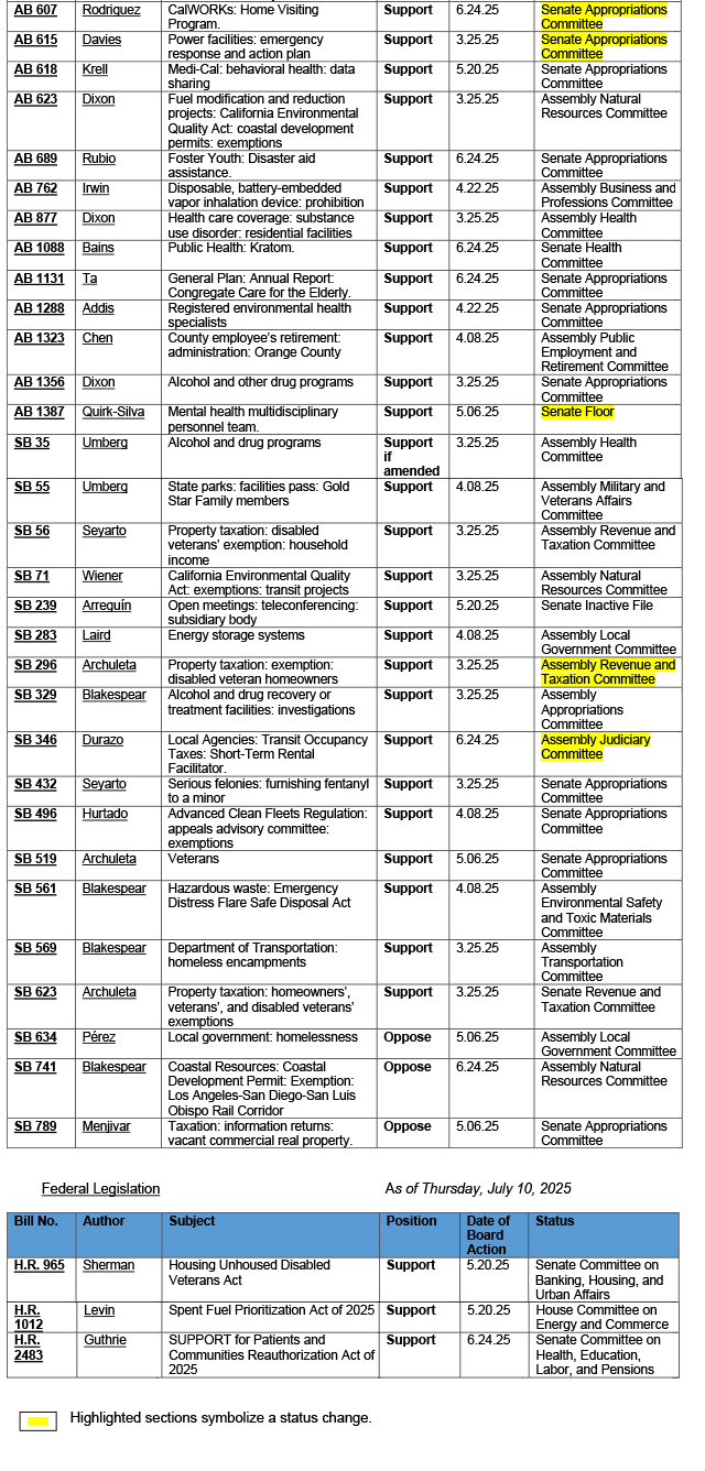 | For more information regarding County of Orange Legislative Affairs, please email at LegAffairs@ocgov.com. |