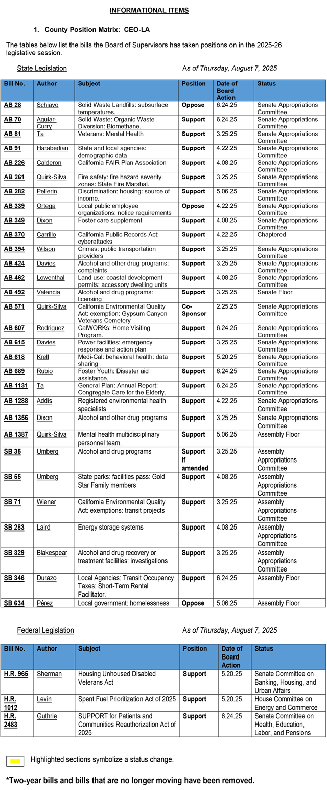 | For more information regarding County of Orange Legislative Affairs, please email at LegAffairs@ocgov.com. |
