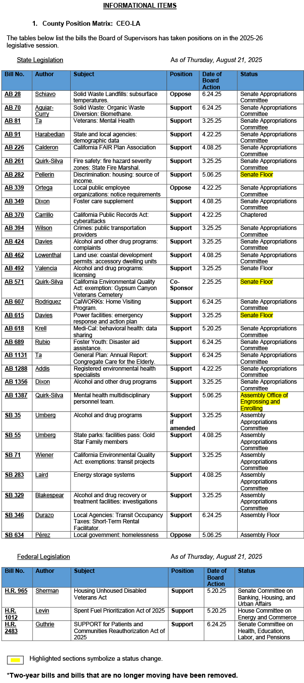 The legislature returned to Sacramento on August 18 and will consider advancing more than 1,100 bills over the next 4 weeks to Governor Gavin Newsom’s desk. The Senate and Assembly appropriations committees will announce the outcome of legislation that has a significant fiscal impact on the state on August 29. Bills that are held on the suspense file will not move forward this year. Bills released from the suspense file will be voted upon by the full Senate or Assembly. The majority of the roughly 1,100 bills will ultimately be delivered to Governor Gavin Newsom for his consideration. The legislature adjourns the 2025 legislative session on September 12 and Newsom will have until October 12 to act on bills sent to him by lawmakers.