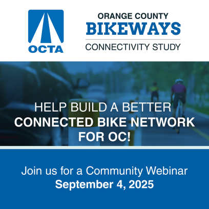 OCTA is preparing the Bikeways Connectivity Study to identify opportunities for improving bike safety and connectivity across Orange County. Join our Community Webinar to learn more about the OCTA Bikeways Connectivity Study. Learn more at octa.net/BikewaysConnectivity