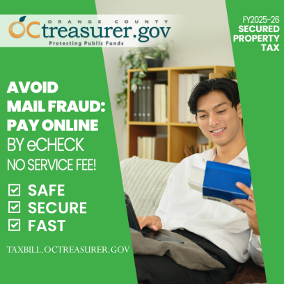 Questions or comments? Contact the Property Tax Call Center at (714) 834-3411 Mon – Fri, 8 am to 5 pm, or email AskTaxCollector@octreasurer.gov