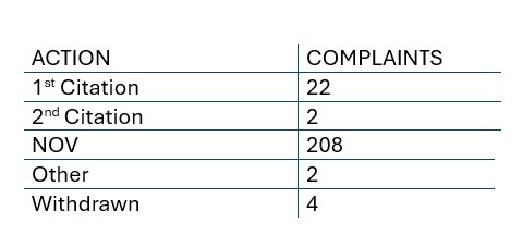 STR STATS 11/10/23 - 11/10/24 Total number of cases (calls/complaints): 798 Total confirmed violations/cases: 208