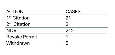 STR STATS 1/12/24 - 1/12/25 Total number of cases (calls/complaints): 879 Total confirmed violations/cases: 212