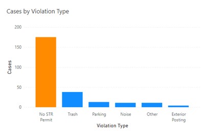 • 2023 renewal cycle began on April 1. Team has been receiving renewal applications along with new permit applications. • Team has been enforcing new Short Term Rental ordinance since March 11, 2022 • STR Enforcement hours – 7 days/nights a week including holidays (until 12am, then sheriff responds) • STR Enforcement goal = patrolling 80% of shift time
