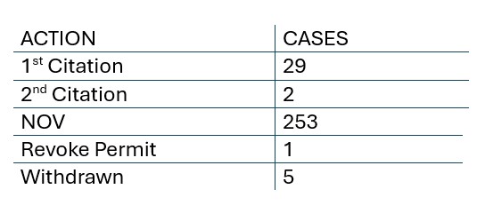 STR STATS 3/21/24 - 3/21/25 Total number of cases (calls/complaints): 742 Total confirmed violations/cases: 253