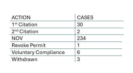 STR STATS 7/13/24 - 7/13/25 Total number of cases (calls/complaints): 716 Total confirmed violations/cases: 234