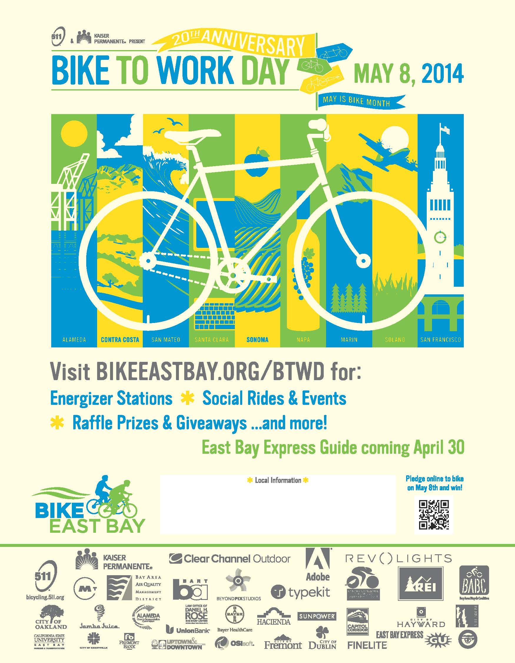 Bike to work, school or even around your neighborhood on Thursday, May 8! Last year, over 15,000 cyclists participated throughout Bike to Work Day, according to the Bike East Bay website. See attached flyer.