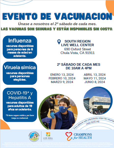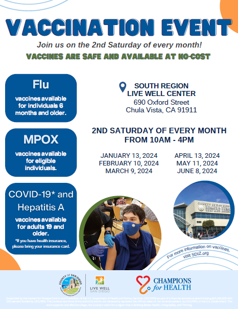 WHERE: South Region Live Well Center, 690 Oxford St., Chula Vista, CA 91911
