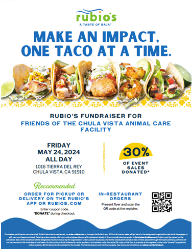 Rubio's Fundraiser for Friends of The Chula Vista Animal Care Facility