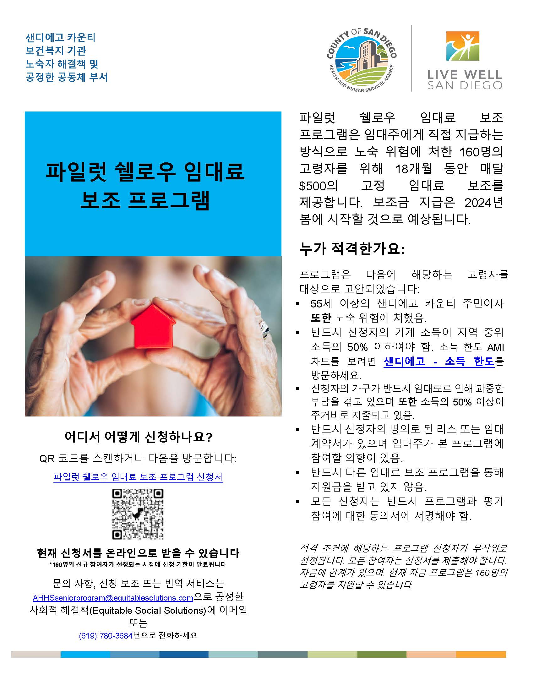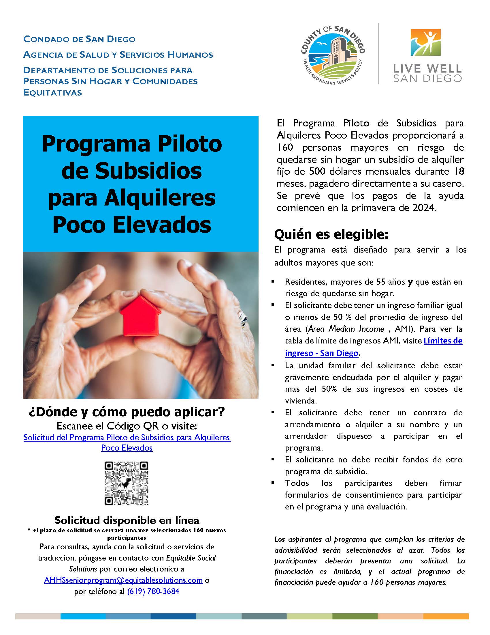 The Pilot Shallow Rental Subsidy Program will provide 160 seniors at risk of homelessness with a flat rental subsidy of $500 monthly for 18 months, payable directly to their landlord. Assistance payments are anticipated in the Spring of 2024.