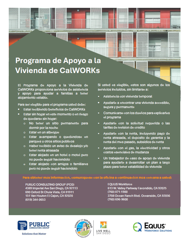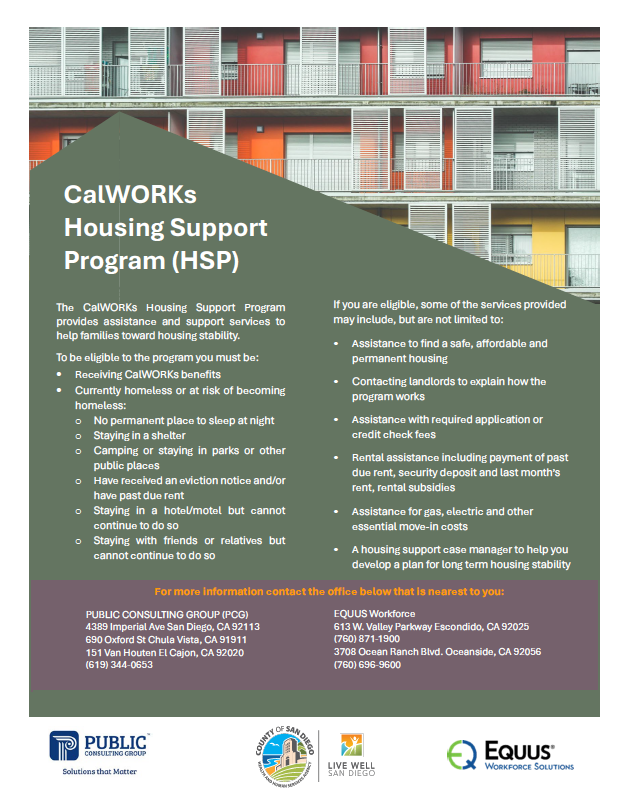 The CalWORKs Housing Support Program provides assistance and support services to help families toward housing stability.