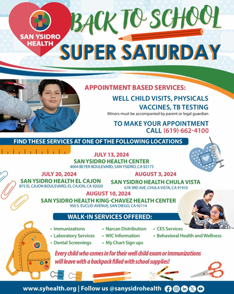 WHERE: San Ysidro Health King-Chavez Health Center, 950 S. Euclid Ave., San Diego, CA 92114