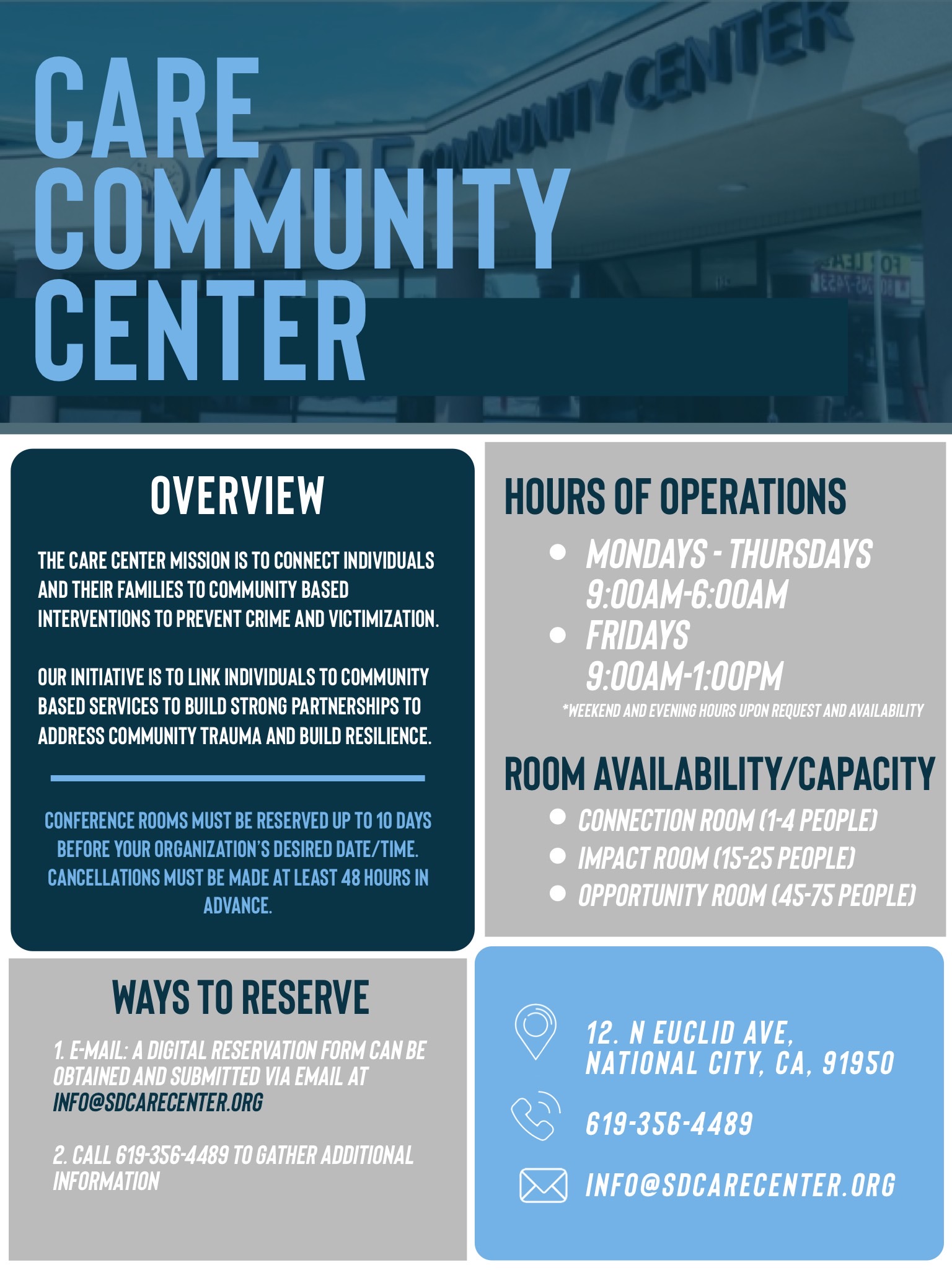 The Care Center's mission is to connect individuals and their families to community-based interventions to prevent crime and victimization.
