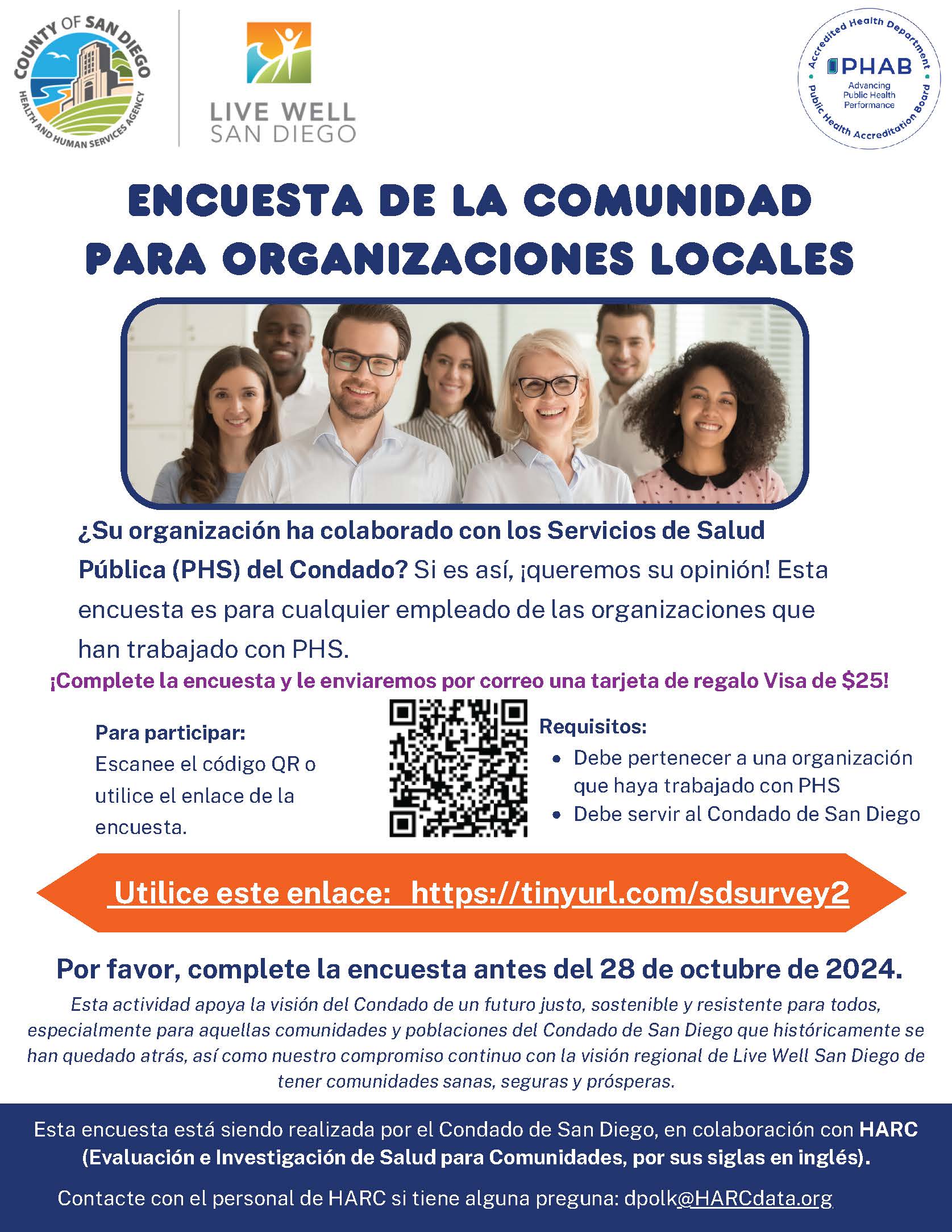 Has your organization collaborated with the County’s Public Health Services (PHS)? If so, we want your feedback! As a thank you for completing the survey, you may receive a $25 Visa gift card! To participate, use the survey link here.